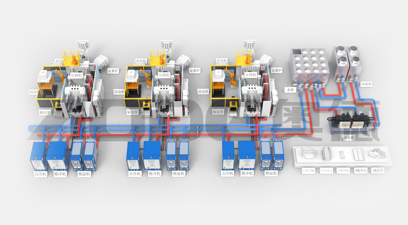 2.壓鑄溫控島一站式交付:模溫機,點(diǎn)冷機,模冷機,冷水機,純水機,模具管道清洗機.